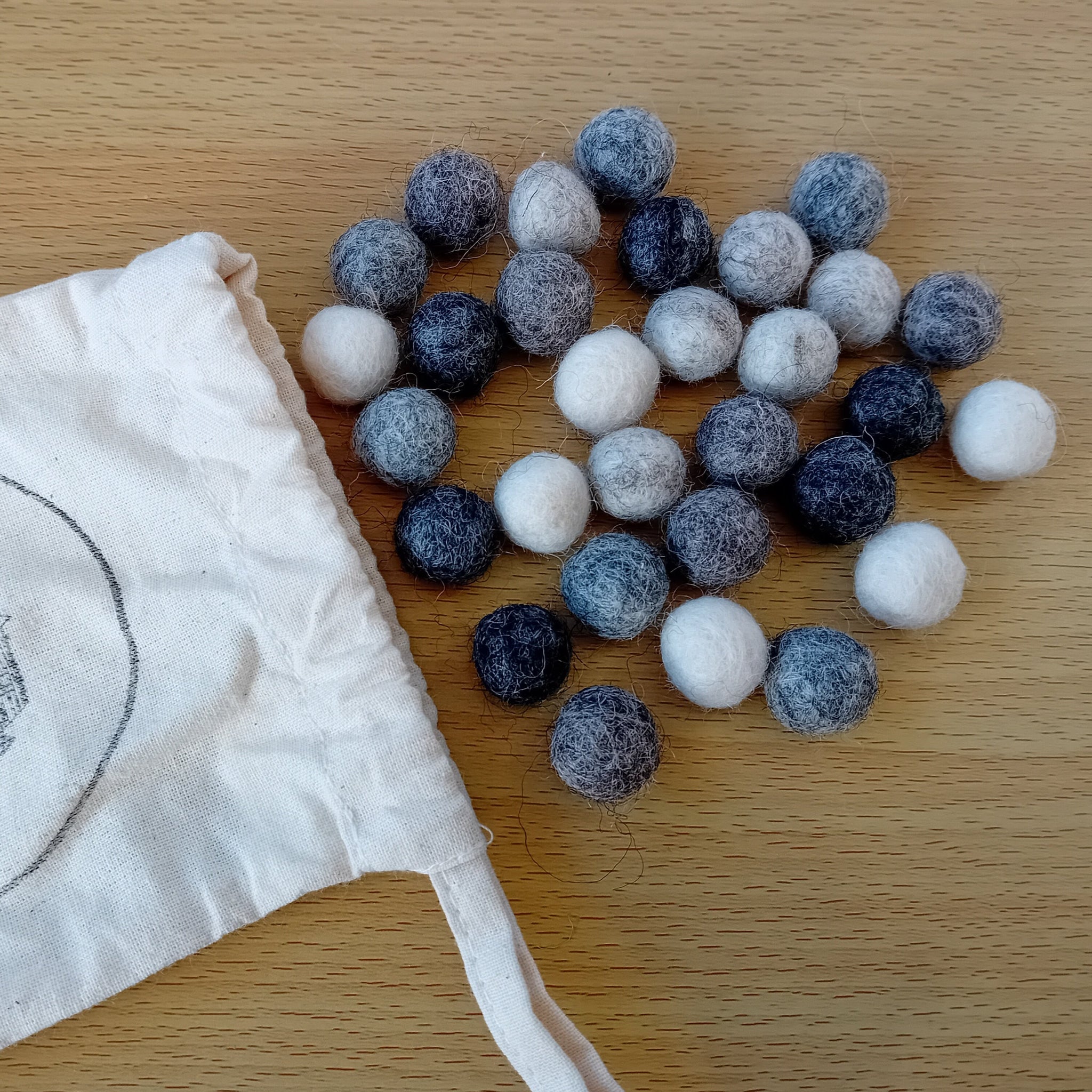 💙 1 set of 30 1cm mini felt balls (winter greys)